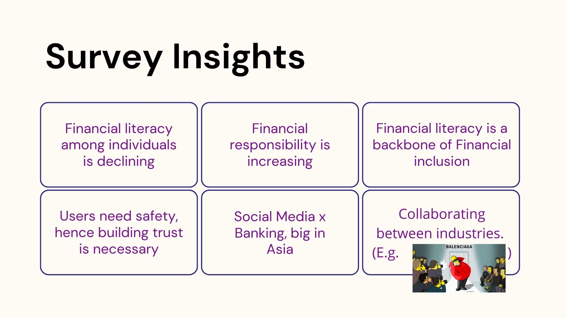 We conducted extensive research, categorizing insights into surveys, branding, and competitor analysis. This led to the development of a social mobile banking app that combines financial management with education and community features. The prototype is attached below.